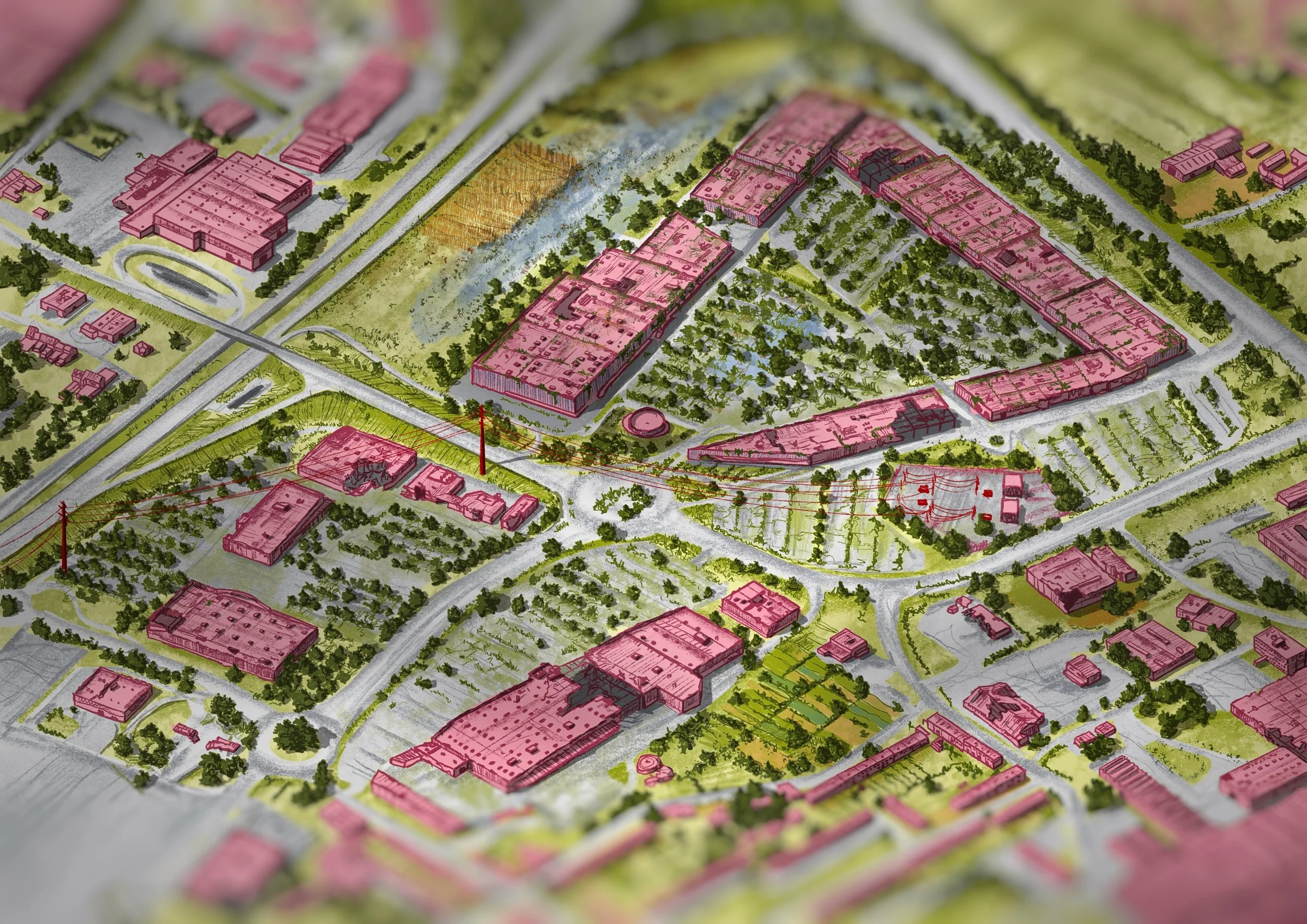 Cette zone commerciale forme en réalité une sorte d’immense extension du centre commercial Auchan Roncq, qui accueille le premier hypermarché Auchan du monde imaginé par la famille Mulliez. Transformer radicalement et durablement cet hyperlieu de consommation en réel quartier de vie devient alors tout un symbole.
